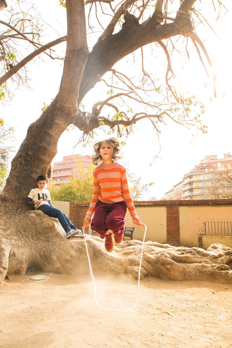 Touwtje springen is een complete fysieke oefening. Naast plezier, zullen kinderen sporten. Daarnaast helpt een springtouw om armen en benen te coördineren en zorgt het voor meer balans, snelheid en behendigheid.