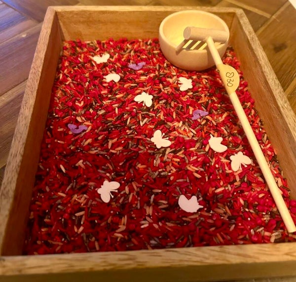 Deze leuke girlmix bestaat uit paarse & rode rijst en rode balletjes met unicorns, regenboogjes en vlinders. Speelrijst zorgt voor urenlang speelplezier en past binnen de trend van sensorisch spelen.