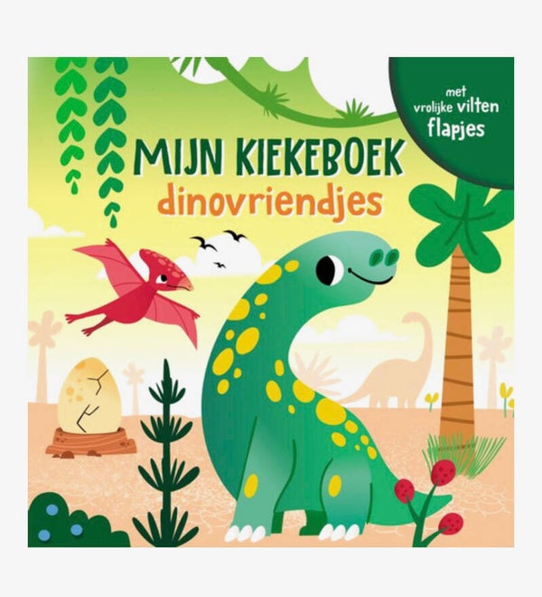 Kiekeboe! Wie ben ik? Zoek samen naar de verstopte dino's achter de vrolijke vilten flapjes. Leer spelenderwijs de dino's kennen door een verhaaltje. Wie zit er verstopt achter de vleugel? Het is een Pteranodon! Het stevige karton maakt dat het boek tegen een stootje kan. Ontdek ook de andere thema's!