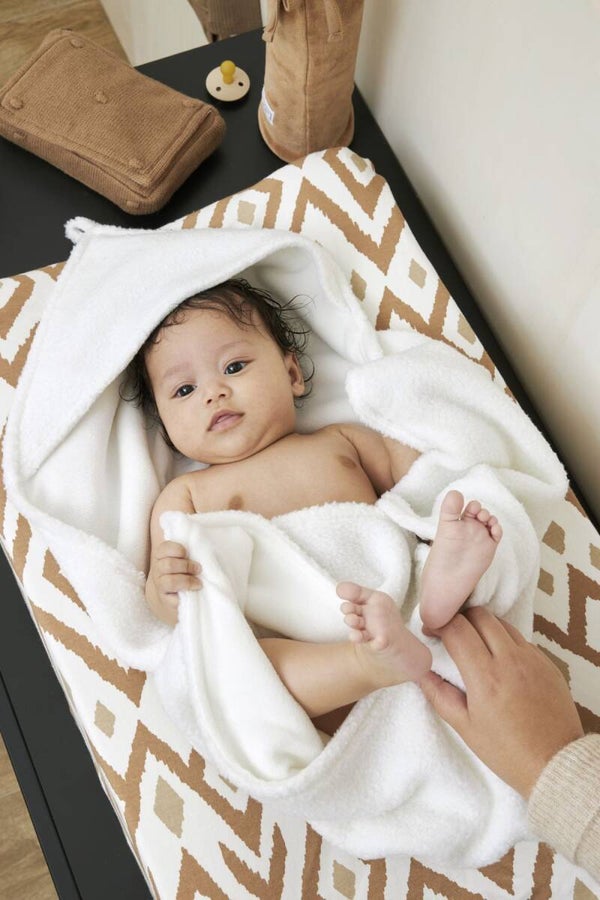De badcape heeft een mooie rustige uni kleur en geeft een luxe, tijdloze uitstraling door de bouclé stof. Hierin mag je kindje gezien worden! Kies uit verschillende mooie kleuren en mix & match de badcape met de complete Meyco Baby collectie. De badcape is voorzien van een gat, waardoor je het ook kunt gebruiken in de autostoel.