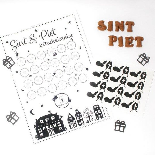 Hoera! Aftellen tot het eindelijk weer pakjesavond is! Met deze gave aftelkalender, gedrukt op 250 grams wit karton, wordt het aftellen veel leuker! Elke dag kan er een sticker geplakt worden!