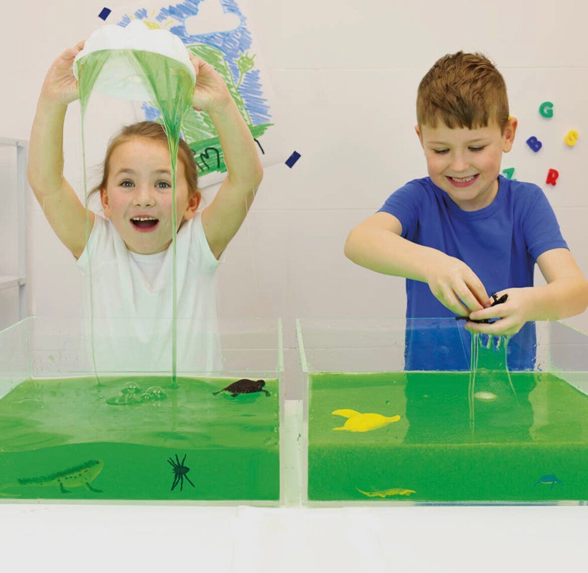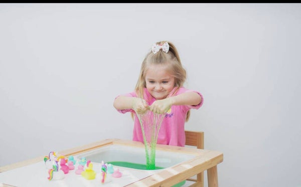 Slime play is verkrijgbaar in verschillende kleuren en is het perfecte product voor rommelig en multisensorisch spelen!