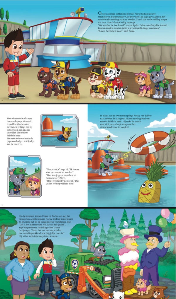 Dit 'PAW Patrol' Dubbeldik voorleesboek bevat zeven verhalen van alle pups en hun vriendjes uit Avonturenbaai. De pups beleven weer van alles en helpen een octopus aan een bril, oefenen met Pup Fu vechten, helpen de postbode op vriendjesdag, bouwen samen een kasteel en nog veel meer! Elk verhaal sluit af met een pagina vol leuke vragen waardoor voorlezen nóg leuker wordt. 'PAW Patrol' is een avontuurlijke en razend populaire animatieserie over een reddingsteam dat uit puppy's bestaat. De Nickelodeon-serie is gericht op peuters en kleuters en wordt wereldwijd in meer dan 170 landen uitgezonden. En dankzij de 'PAW Patrol'-boeken kunnen fans nu ook zónder scherm genieten van hun favoriete puppy's!