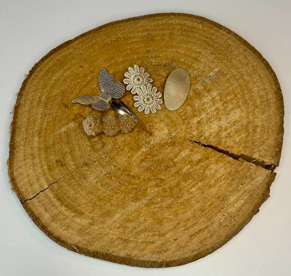 Set van 4 speldjes in mooie neutrale kleurtjes en goudkleurige vlinder.