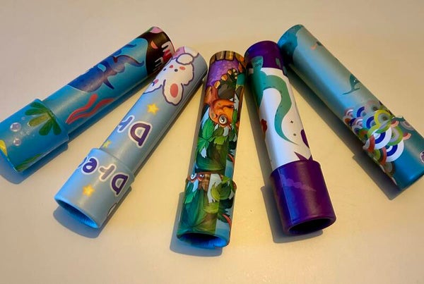 Wie kent het niet uit zijn jeugd? Deze leuke caleidoscoop wekken nieuwsgierigheid op en neemt je mee in een betoverende wereld. Verkrijgbaar in verschillende leuke patronen.