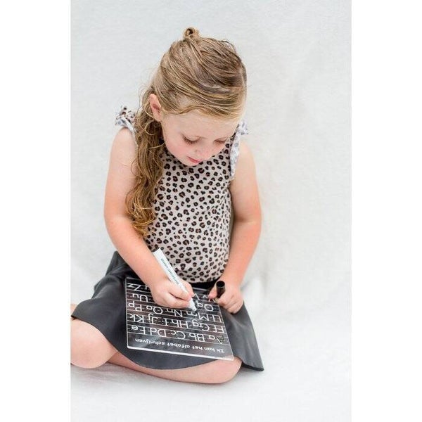 We hebben dit acryl/plexiglas bord ontworpen voor de kinderen die willen oefenen met letters schrijven, we graveren dit in het bord. Je krijgt een whiteboard marker van ons erbij, ready to use!
