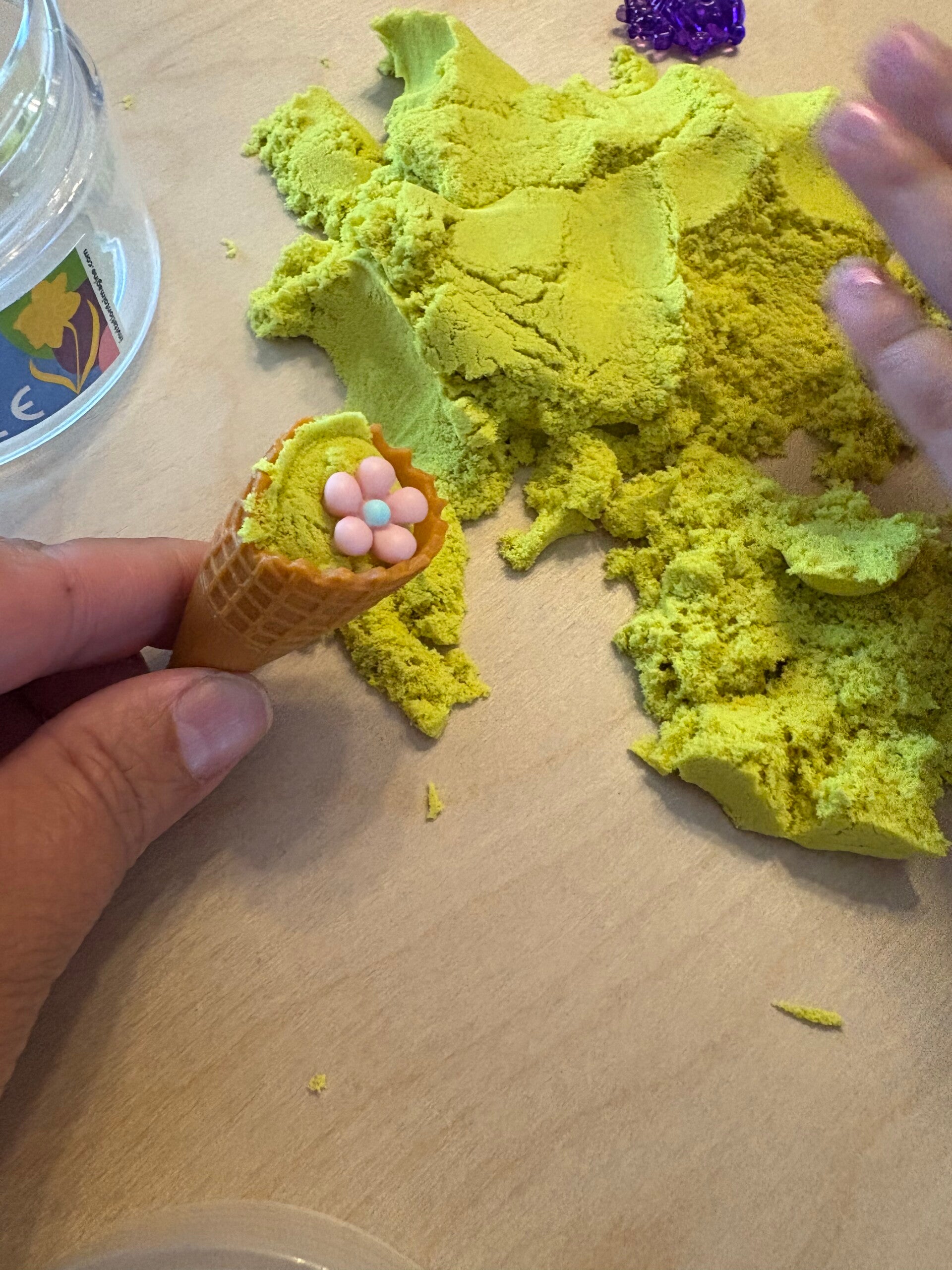 Set van 3 ijshoorntjes. Gemaakt van hars en fijn voor de kleine handjes. De hoorntjes zijn 6 cm lang en hebben een diameter van 2,5 cm. Laat je kleintje zelfs ijsjes maken met speeldeeg, kinetisch zand of gelli play. Het formaat van dit lepeltje is er heel handig bij!