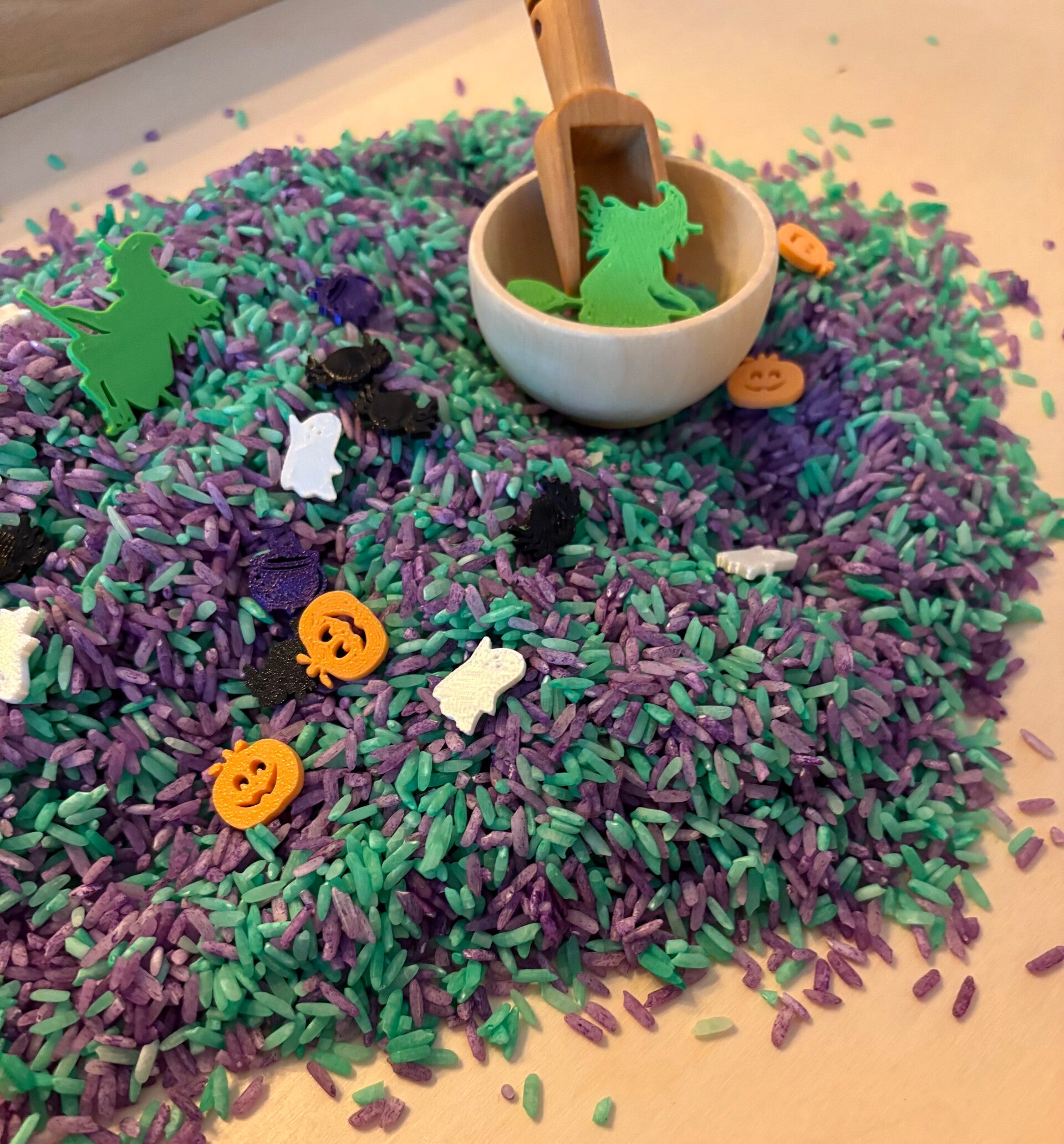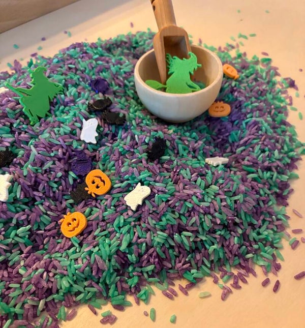Deze leuke halloween mix bestaat uit rijst in groen en paars met spookjes, pompoenen, heksen, spinnen en ketels. Speelrijst zorgt voor urenlang speelplezier en past binnen de trend van sensorisch spelen.