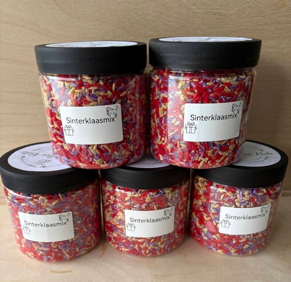 Deze leuke herfst mix bestaat uit rijst in fijne Sinterklaas kleurtjes met pieten, paarden, mijters, staf en pietenmutsen. Speelrijst zorgt voor urenlang speelplezier en past binnen de trend van sensorisch spelen.