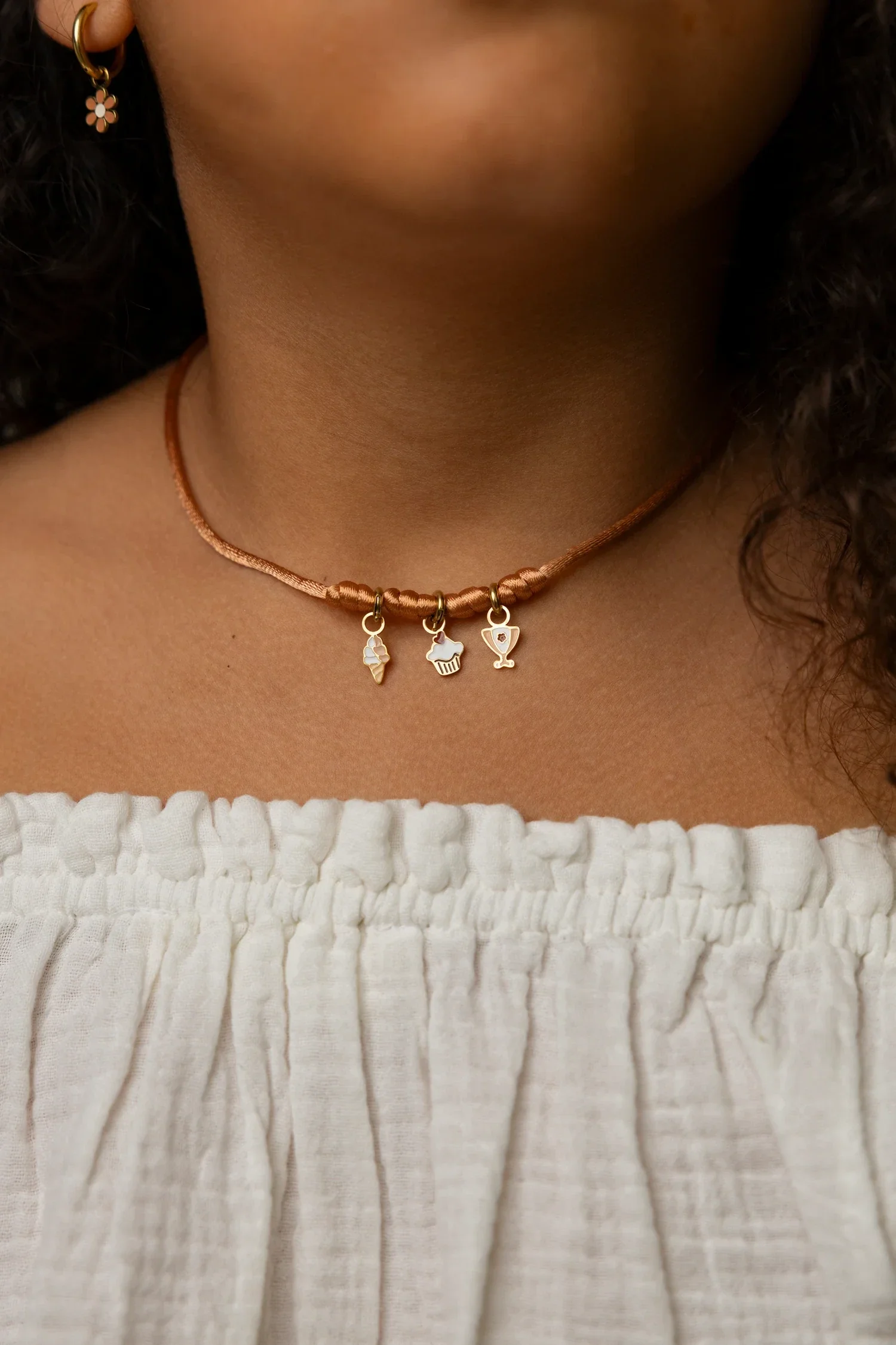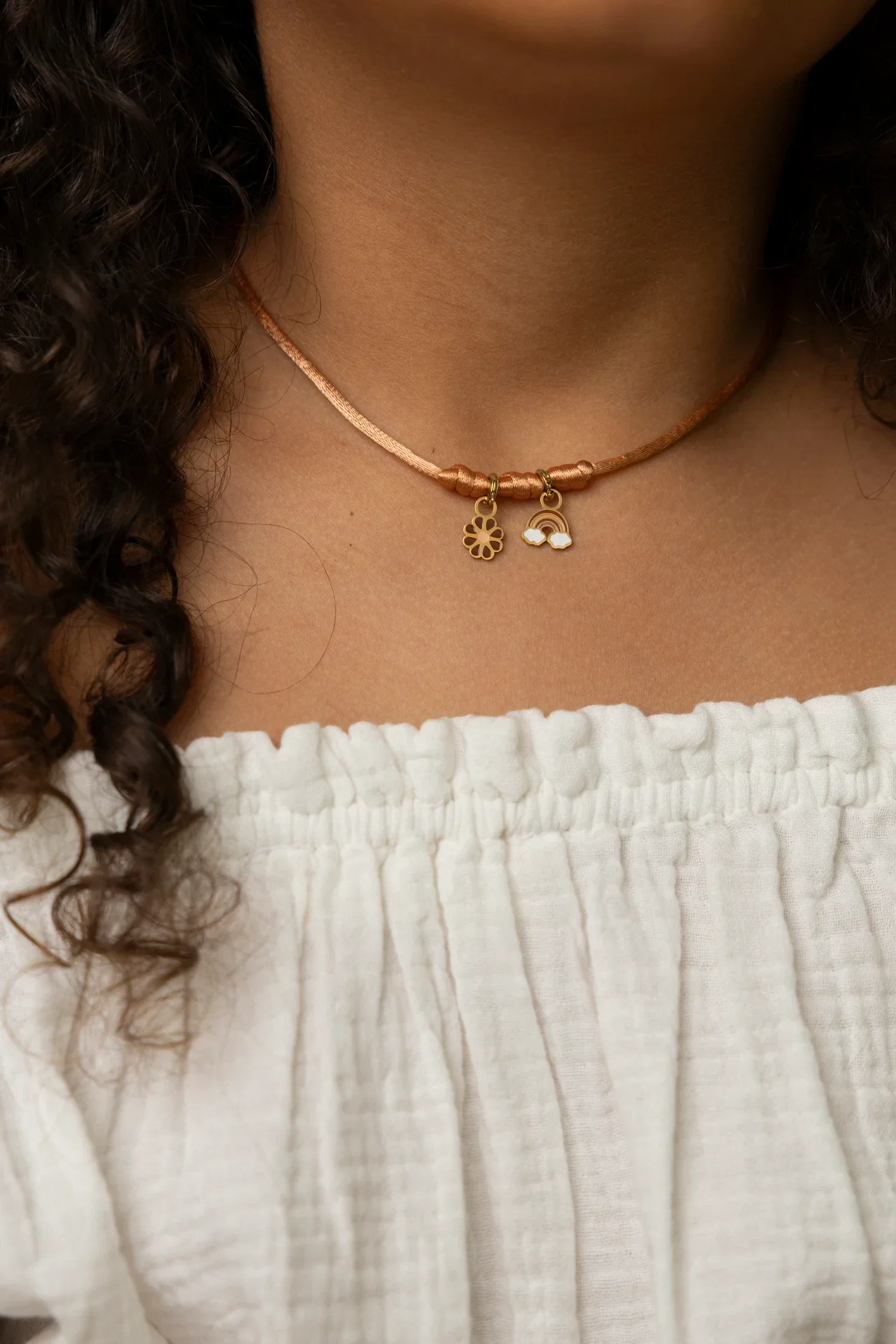 Deze basisketting is gemaakt van 100% algodão (biologisch katoen) in de prachtige kleur rusted. Kies of je 1, 2 of 3 charms aan deze ketting wilt hangen door het juiste model te selecteren.