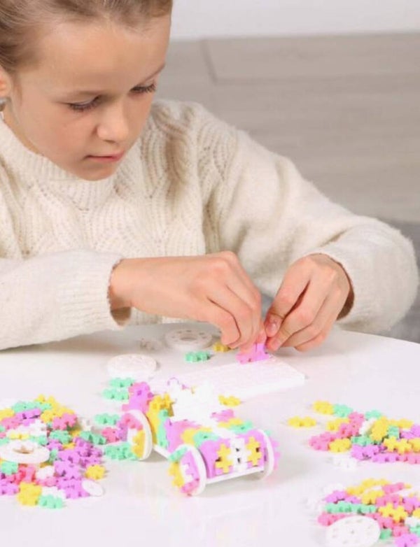 Laat je fantasie op volle toeren draaien met de Plus-Plus Color Cars – Candy! Deze vrolijke bouwset bevat 200 bouwstenen in zachte pastelkleuren waarmee kinderen hun eigen kleurrijke voertuigen kunnen bouwen. Dankzij de meegeleverde wielen en bouwplaat kunnen ze direct aan de slag. Of je nu een snoepauto, een droomwagen of een fantasievoertuig maakt – met deze set is alles mogelijk. Ideaal voor creatieve kinderen vanaf 5 jaar.