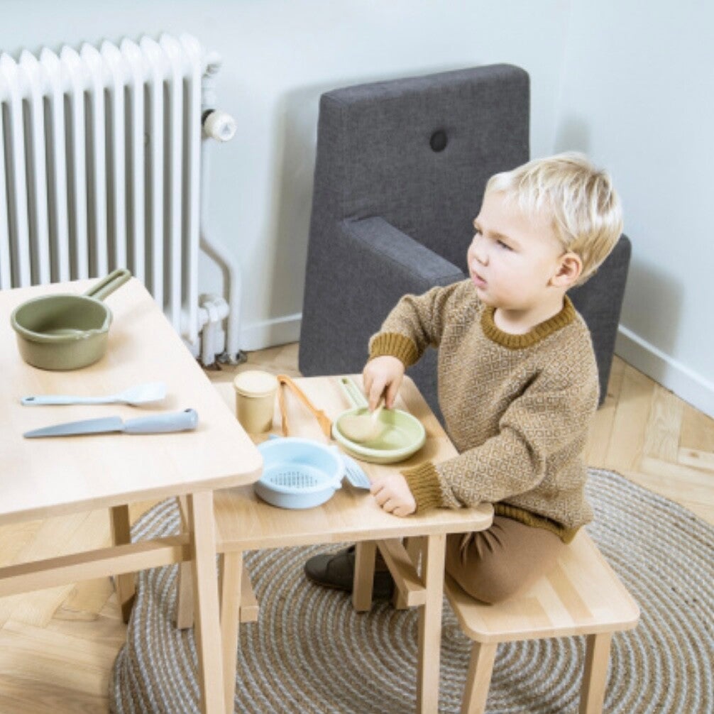 Ecologisch verantwoord keukengerei uit de collectie BIOplastic van het Deense merk Dantoy in prachtige pastelkleuren. Komt goed van pas in de speelkeuken of om mee te helpen koken in de keuken. Dit is speelgoed dat het rollenspel stimuleert.