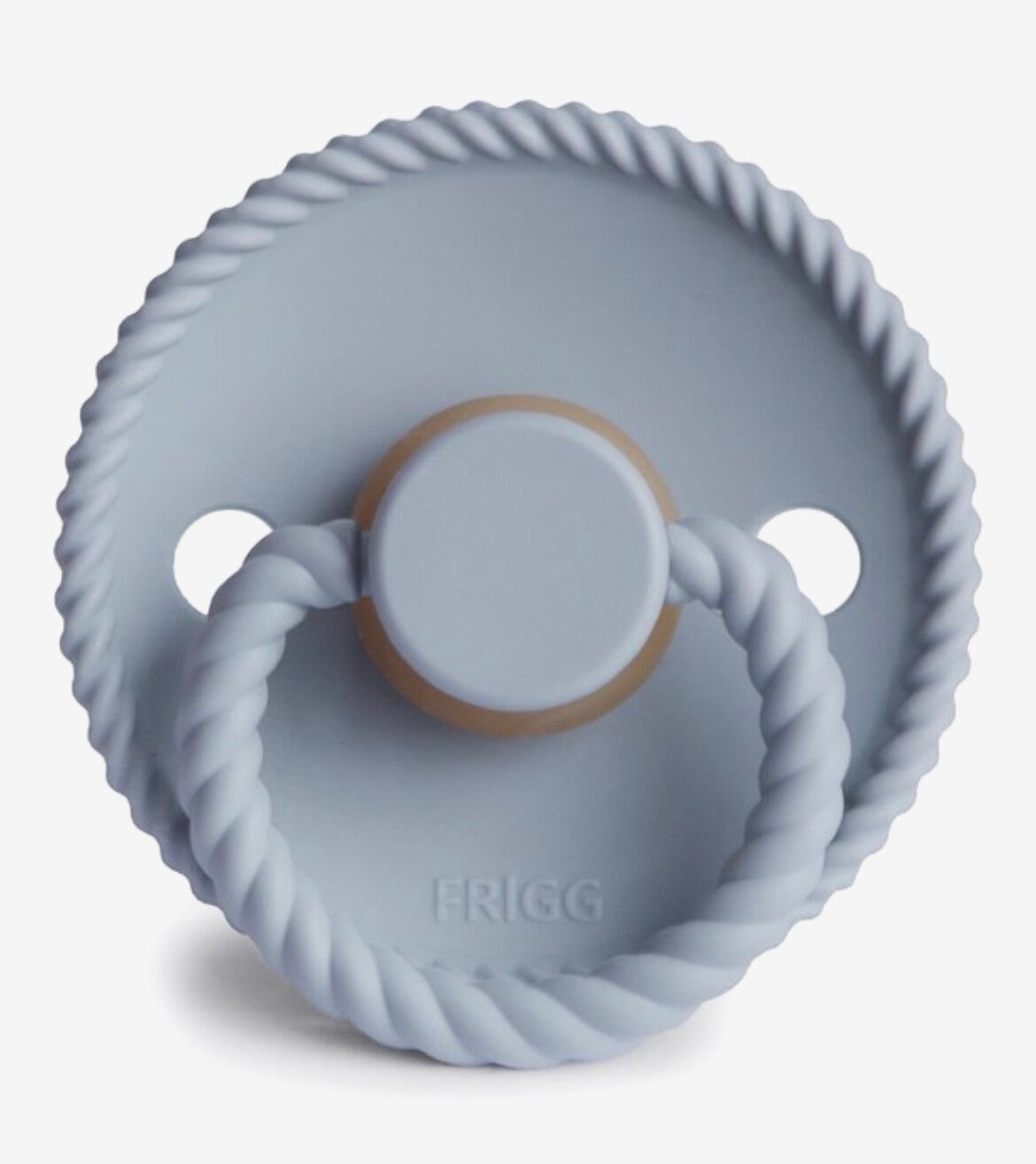 De Frigg fopspeen Rope - Powder Blue is voorzien van een uniek retro design en een comfortabele vorm. De Frigg fospenen hebben 2 luchtgaten in het schildje zitten, waardoor je kleintje altijd goed kan blijven doorademen.