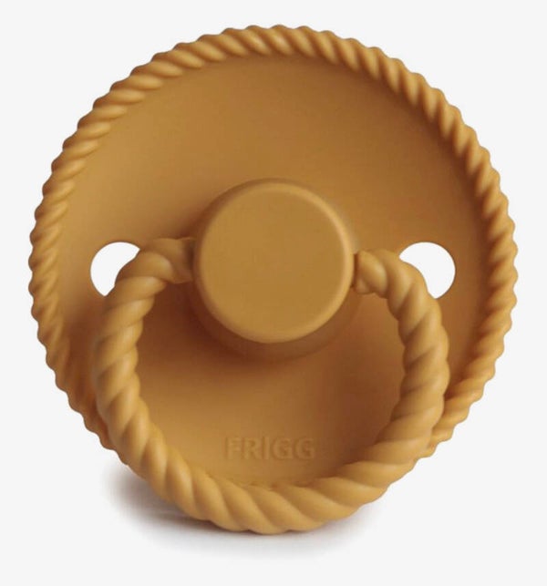 De Frigg fopspeen Rope - Honey Gold is voorzien van een uniek retro design en een comfortabele vorm. De Frigg fospenen hebben 2 luchtgaten in het schildje zitten, waardoor je kleintje altijd goed kan blijven doorademen.