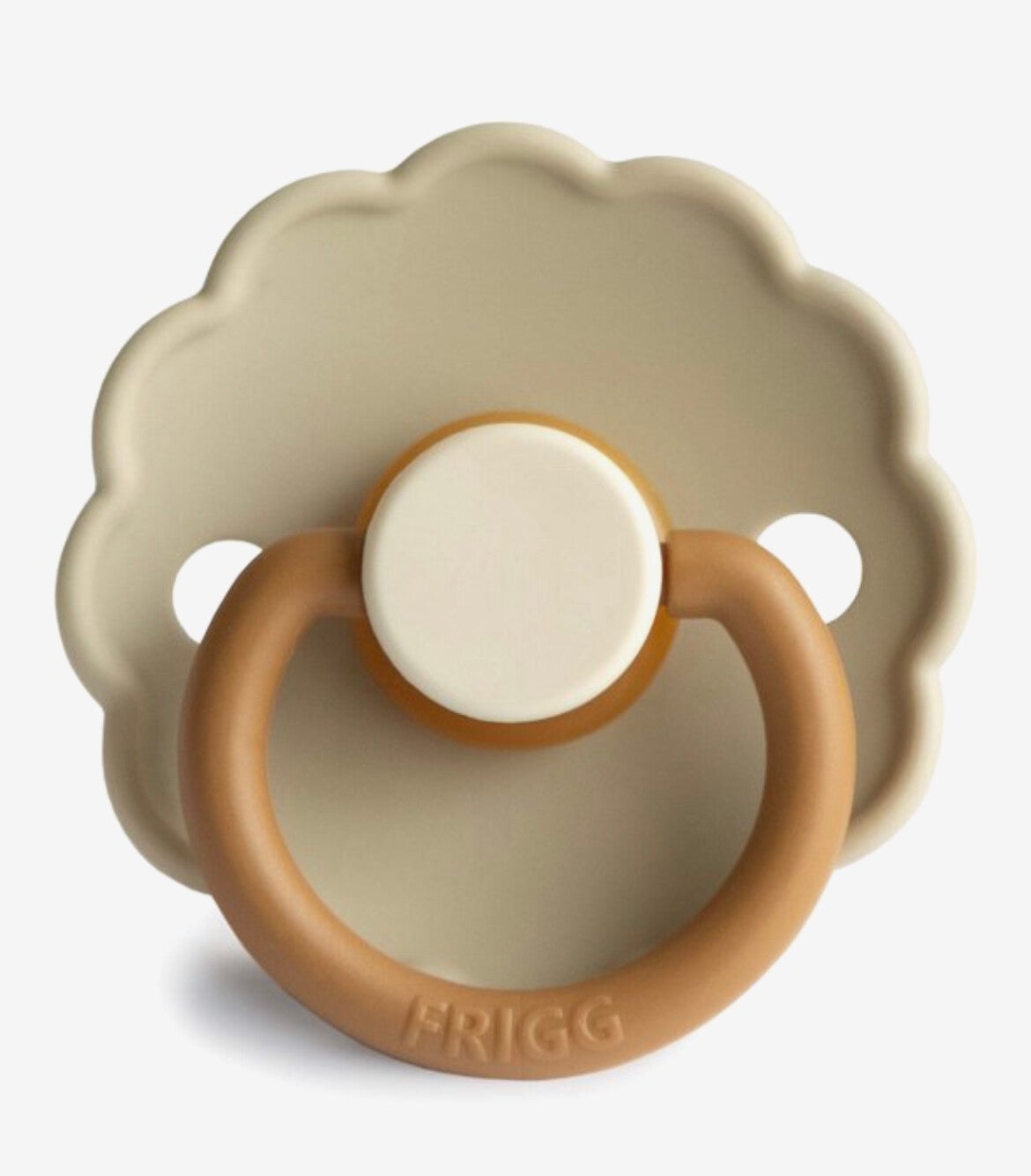 De Frigg fopspeen Daisy - Desert is voorzien van een uniek retro design en een comfortabele vorm. De Frigg fospenen hebben 2 luchtgaten in het schildje zitten, waardoor je kleintje altijd goed kan blijven doorademen.