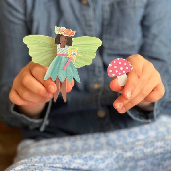 Dit pakket bestaat uit: kartonnen uitsparingen, lijmstippen en houten penpop.
