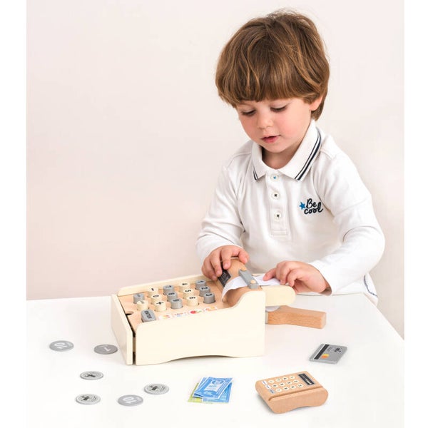 Spelen met deze speelgoed kassa stimuleert de fijne motoriek, de kleurherkenning en de creativiteit van kinderen. Deze kassa van New Classic Toys is onderdeel van de Bon Appetit productlijn, alles voor in en rondom de keuken. Deze kassa is gemaakt van 100% FSC Hout.