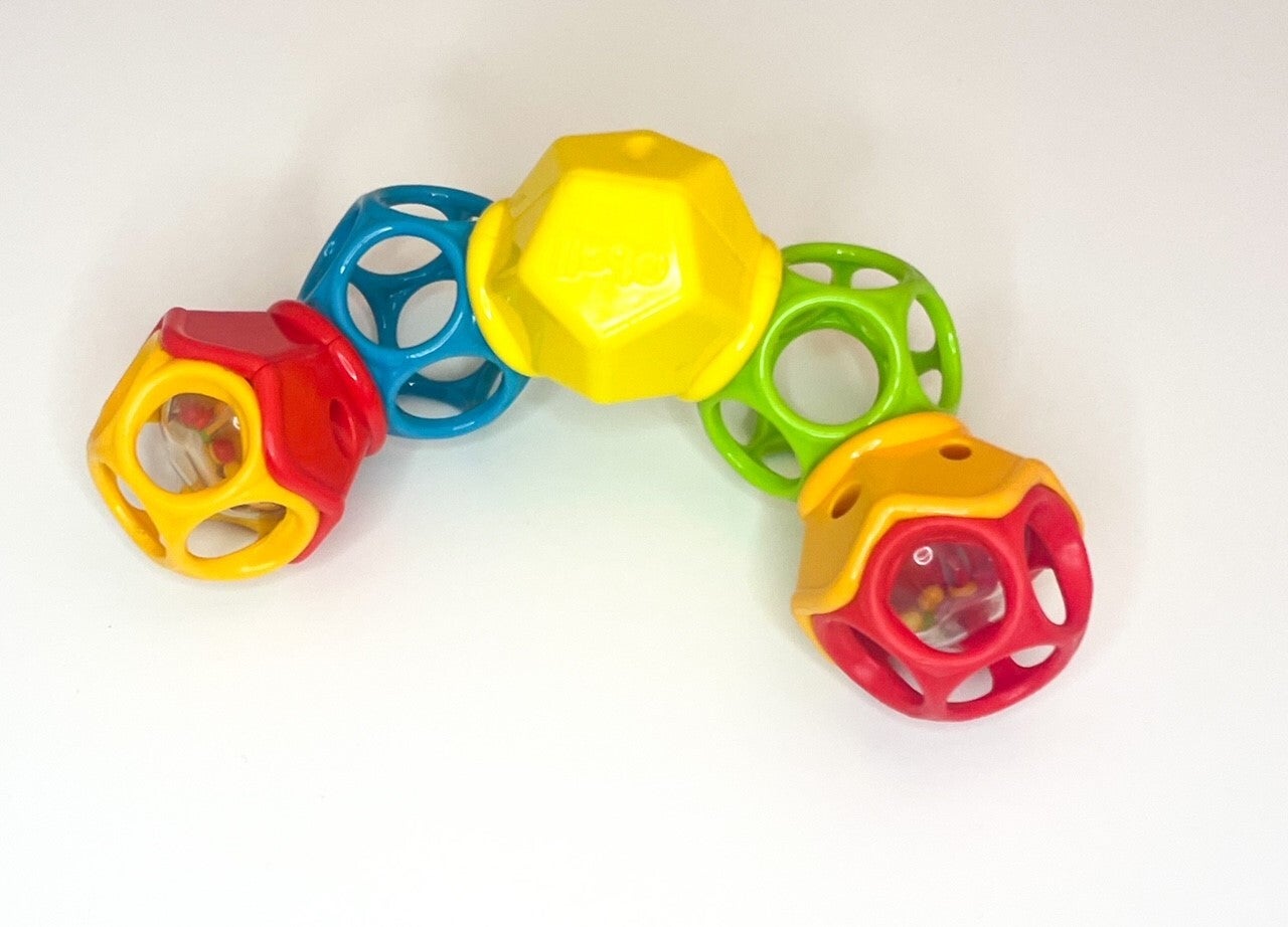 Een fijne rammelaar die prettig in de hand ligt en fijn geluid maakt. Daagt je kleintje uit in de allereerste fase! De onderdelen kunnen ook gedraaid worden.